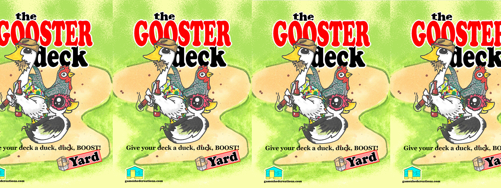 Gooster Deck 'Yard' is a twentyfive card expansion for your core Duck,Duck,GOOSE! card deck. 'Yard' contains new Yardbirds, Ducks, Farmer, Fox, and more.