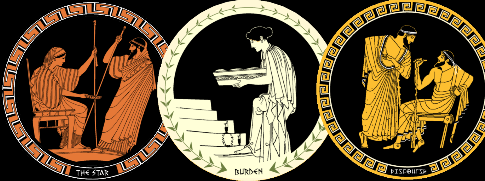 This deck was primarily created from Ancient Greek Kylix, Lekythos, Krater and Amphorae Vessels (vases). Historical artworks were digitized, restored, and modified for use in this deck. In keeping with Greek tradition, the suits represent black figure, red figure, and white ground technique. Additionally, red figure works were used as gold figure cards (veering somewhat from tradition).