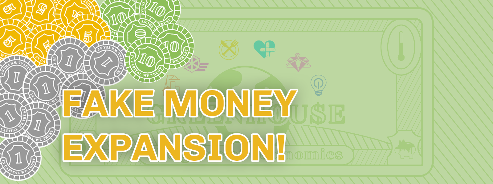 Wow. Greenhou$e was DESIGNED to be less WASTEFUL by asking you to find your own fake money. But you just HAD to have it your way huh? You could have gotten poker chips from the thrift store, used candy, or even real money, but no, you wanted SPECIAL fake money. Well, here's a bunch of cute little coins. I hope you're happy.