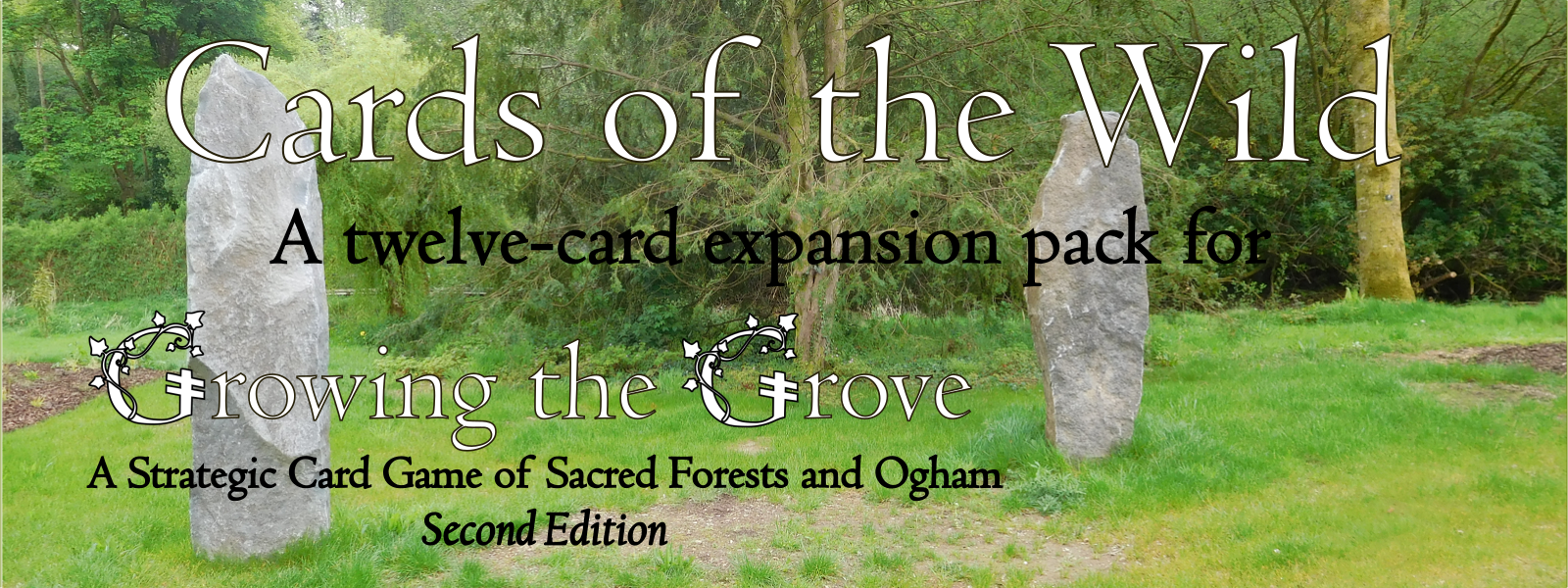 Cards of the Wild expands Growing the Grove with twelve Wild Cards, a new card type separate from the Plant and Ogham cards of the original game. Instead of plants, these Wild Cards represent elements and concepts in modern Druidry, as adapted from ancient practices. When invoked, each card causes a unique and powerful effect that can greatly aid a player in their goal: to grow the greatest forest in the land.
