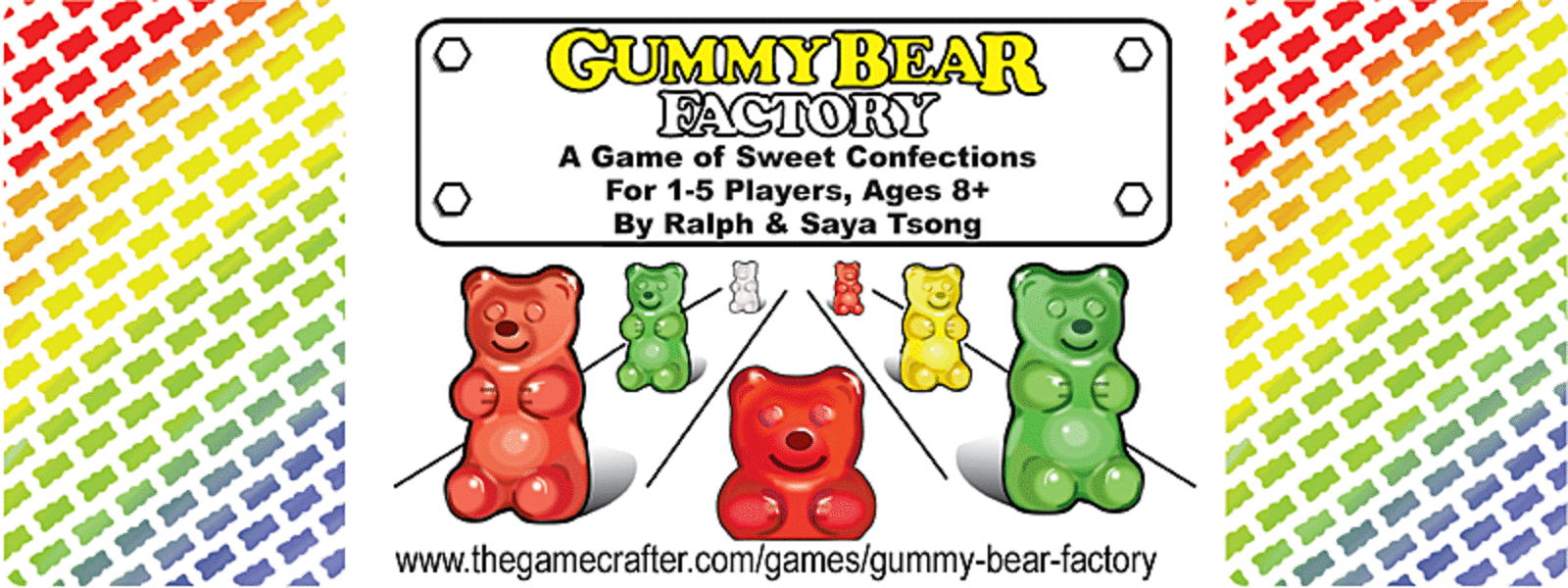 Gummy Bear Factory is the only game that you can use real gummy bears in place of the included scoring winks and increase your fun! You provide your own. Symbols allow easy play for color blind players. There's also a challenging solitaire variant and special two player rules.