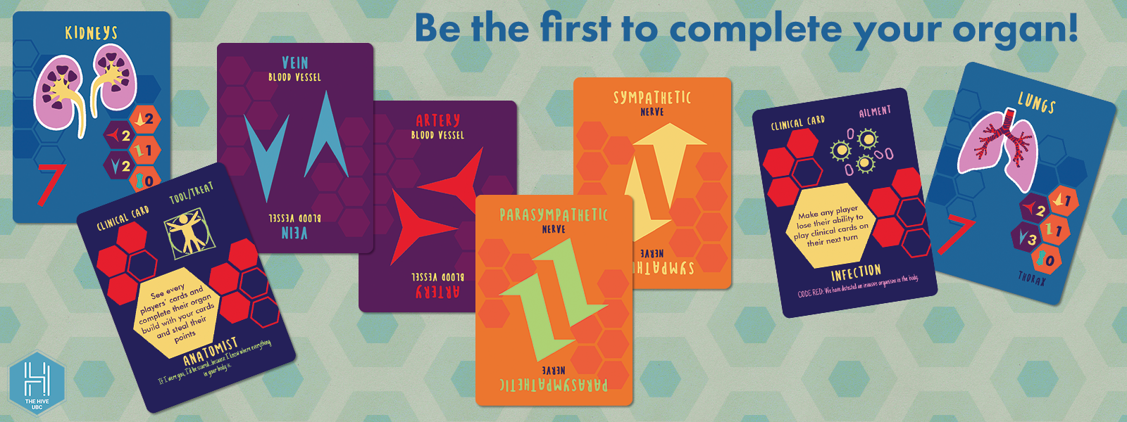 Inspired by game elements of Rummy, Uno and Settlers of Catan, Gut It Out is a modular anatomy card game that can be easily adapted to suit players with varying levels of anatomy knowledge. Never taken anatomy before? No problem. Each organ card comes with a legend detailing the number of nerve and vessel cards you need to collect. Perhaps you’re a medical student looking to put your anatomy knowledge to the test? We’ve got you covered. Increase the stakes and identify specific nerves and vessels for bonus points. No matter who you are or where you are, you’re bound to have endless fun with this quick and portable anatomy game.