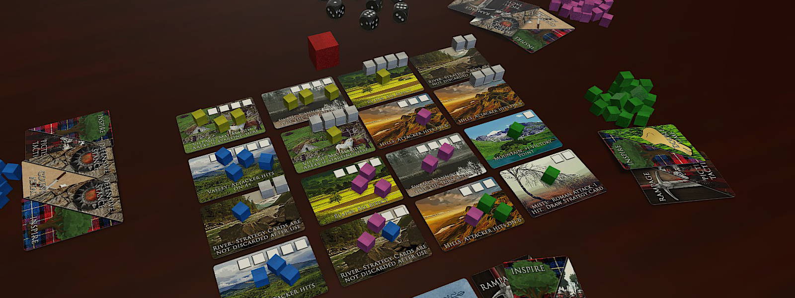 84 AD - The Picts defend their homeland against the tyranny of the invading Romans. As leaders of different Pict tribes, earn glory through battle, take over territory, and fight back against your aggressors. Rival Pict tribes also vie for glory, but beware: all players lose if the Romans advance too far into Pictland.