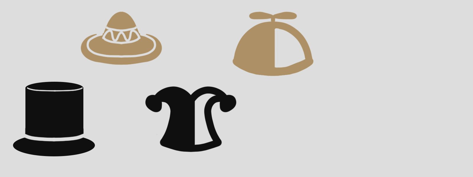 The Hat Trick Deck is a standard 54 card poker deck designed around the theme of silly hats. The Top Hat, Sombrero, Jester Hat and Beanie become your suits as you shuffle and deal your way through whatever casual or high-stakes game you choose.