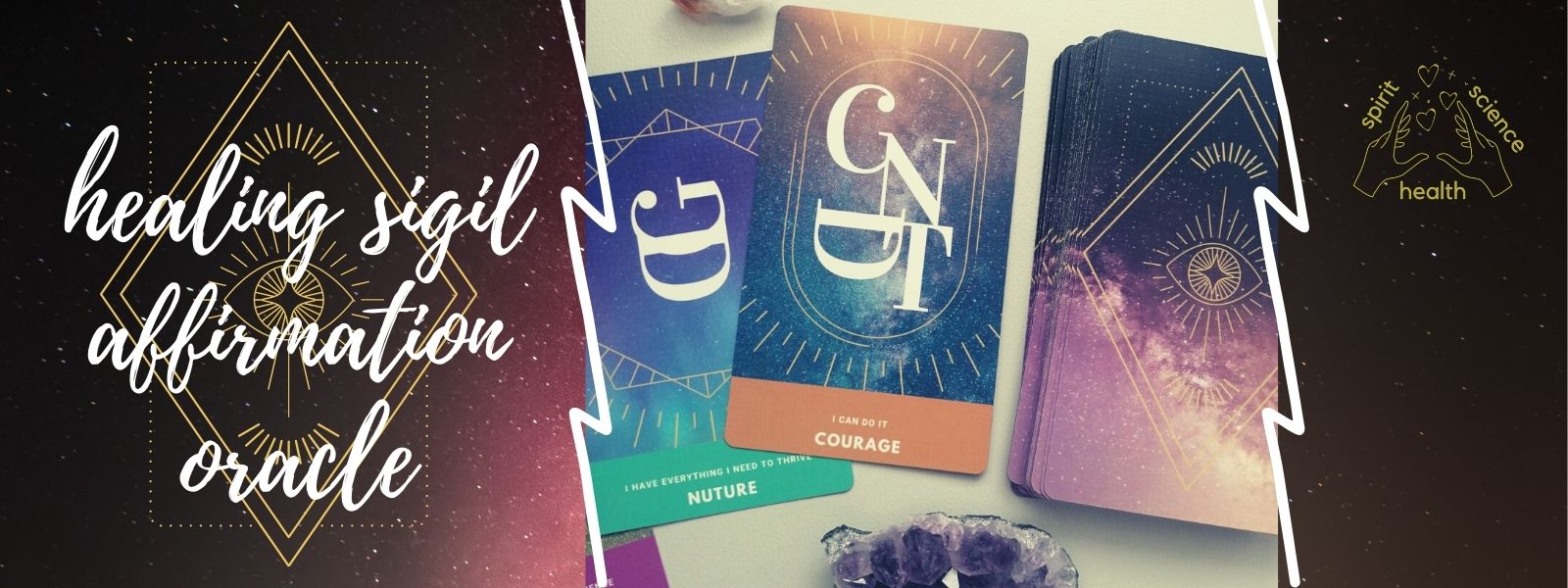 An interpretative oracle deck that incorporates the healing magic of sigil affirmations.