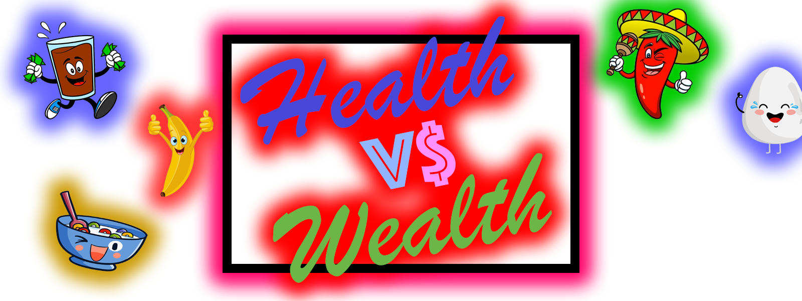 Health vs. Wealth is a race around the board to become the healthiest or wealthiest Gamer. The first Gamer to collect one card from each food group (Dairy, Grains, Proteins, Vegetables and Fruits) wins "Health". The Gamer with the most $$$ at the end of the game wins "Wealth". The best Gamer wins both "Health" and "Wealth"!