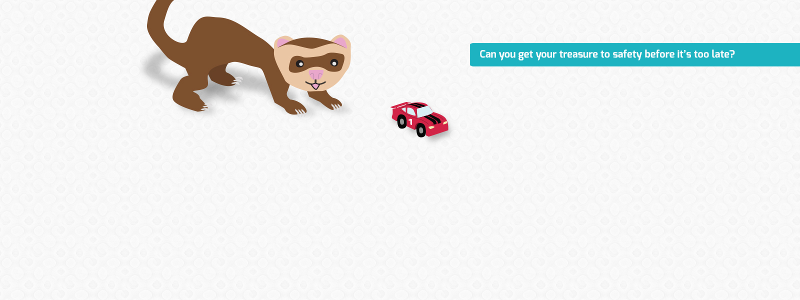 The object of Hidey Hole is to get your pieces of treasure safely tucked away into your favorite hidden place, your hidey hole. To do this you have to take your chances and fish something chewy, fuzzy or squeaky out of the treasure bag. Once you find something worthy of hiding you must carry it to your treasure trove, but be careful because you are not alone and it's a long way back to your secret hideout. The longer you take to get back with your prize the more likely it is that someone will try to make it their own. The other ferrets in the house have their eyes on stocking up their own cozy spaces and might be tempted to try and steal your treasure from you before you make it back. Why dig for treasure when someone has already done the hard work for you?