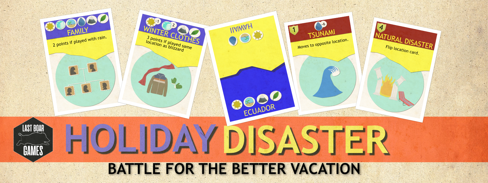 Tired of boring, safe vacations? Well spice up your vacation with a little Holiday Disaster! Compete across three lanes with your opponent as plans change and disaster strikes. Will you pack the right things? And have a good vacation? Holiday disaster is a quirky, easy to learn game that takes less than 15 min's to play.