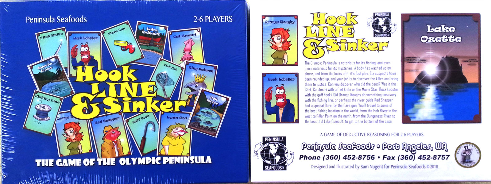 Fisherman Jack’s body has washed ashore and something is fishy about his demise. Murder! The object of the game is to discover the answer to these three questions: 1st. Who? Which one of the several suspects did it? 2nd. Where? Which fishing spot was he at? 3rd. What was used to do him in? The player who, by the process of deduction and good plain common sense, first identifies the 3 solution cards wins the game. This is accomplished by players moving to the fishing spots and making “suggestions” of what they believe is the place, the person and the weapon for the purpose of gaining information. This information may reveal which cards are in other players’ hands and which cards are missing and must, therefore, be hidden in the solution cards.