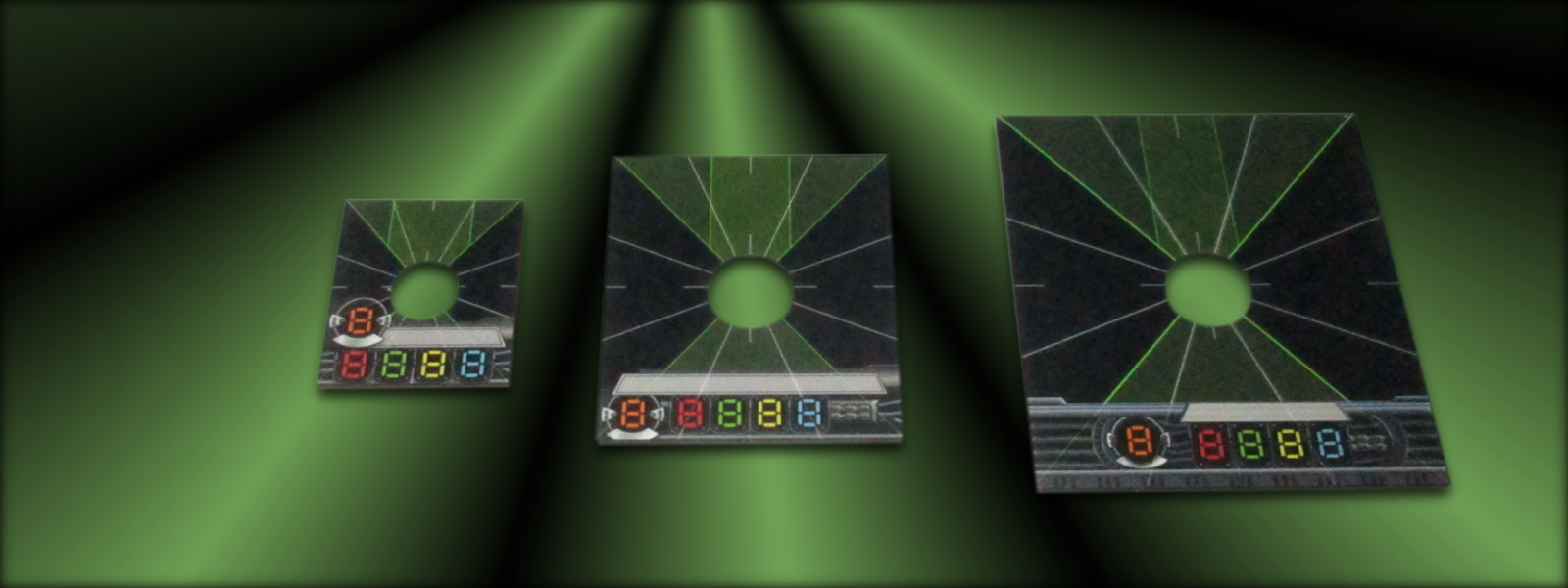 This set includes 16 small, 4 medium, and 2 large ship template tiles with built-in HotAC AI arcs. The front side of the small tile has the generic eyeball fighter, whereas the back has digital 8s which, since all components are dry-erase surfaces, allow players to make custom dupes, squints, or whatever other ships you're throwing at your heroes! The large bases have shuttle info on the flip side, since these are the most common in the campaign, but the backs have digital 8s for customization.