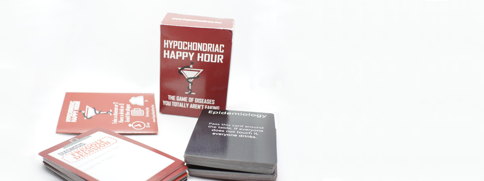 Diagnosis cards prevent you from using things such as your hands or eyeballs, so everyone must work together. If your neighbor can't pick up their drink, hold it up to their mouth for them. If they can't see, draw and read a card for them. If the combination of everyone's Diagnosis prevents the game from being played, everyone must finish their current drink and the game ends.