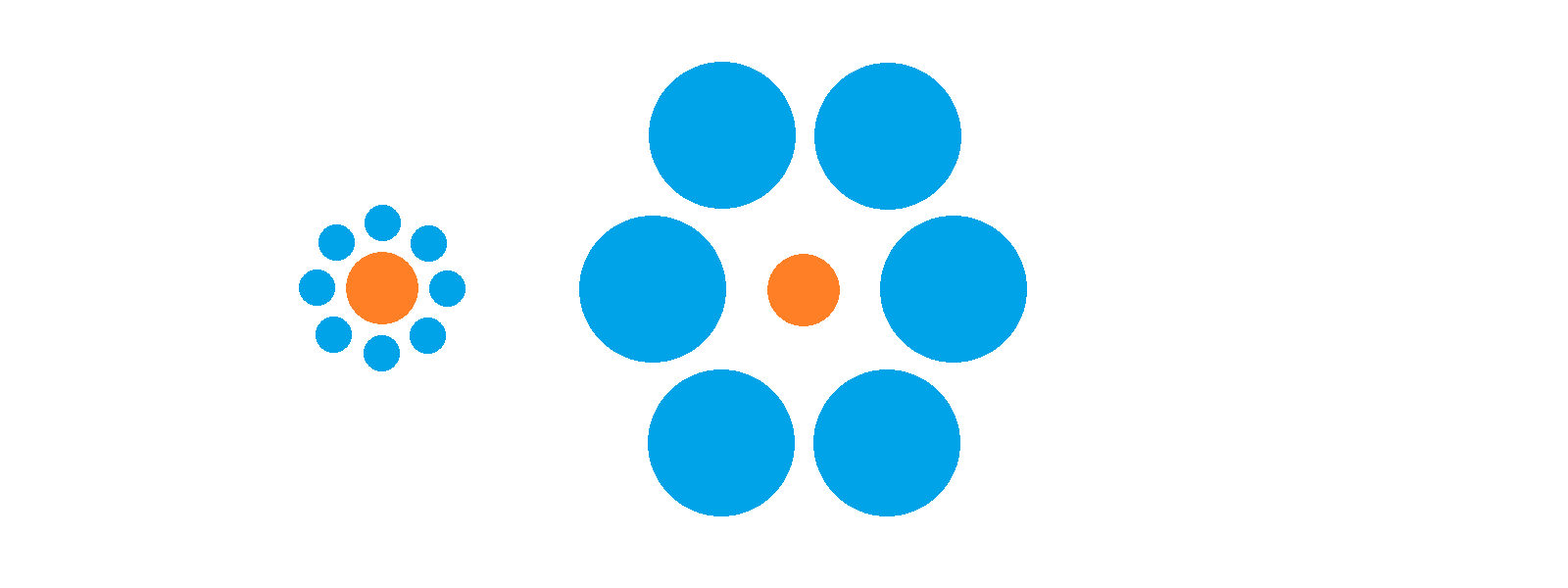 In this example, the orange circle is the same size in both the left and right designs. Most of us have seen this illusion. However, what if the orange circle on the left were actually smaller? Would we realize the truth, or would we fail the interview and assume that our eyes were being tricked?