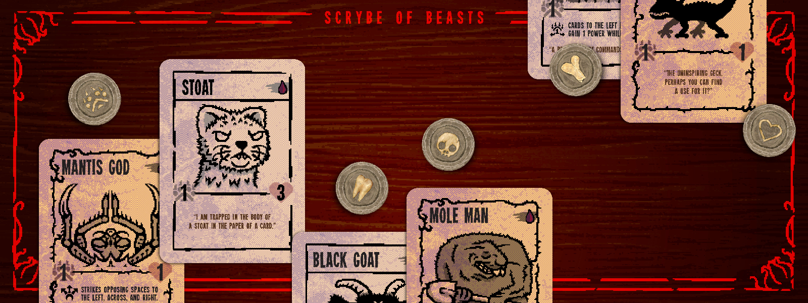 Only a faint clinking sound ahead could distract you from the sight... You embark upon... the Woodlands. A strange pack of creatures has pledged themselves to you, and yet sacrifices must be made. Two candles mark your fragile existence, and with each defeat, a flame is snuffed out...