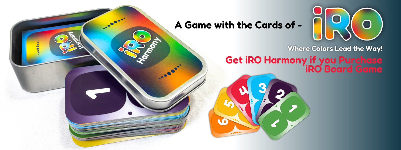 The mint tin includes two rule folios to guide you through both standard and alternate play styles, making it easy to dive into the colorful world of IRO Harmony anytime, anywhere.