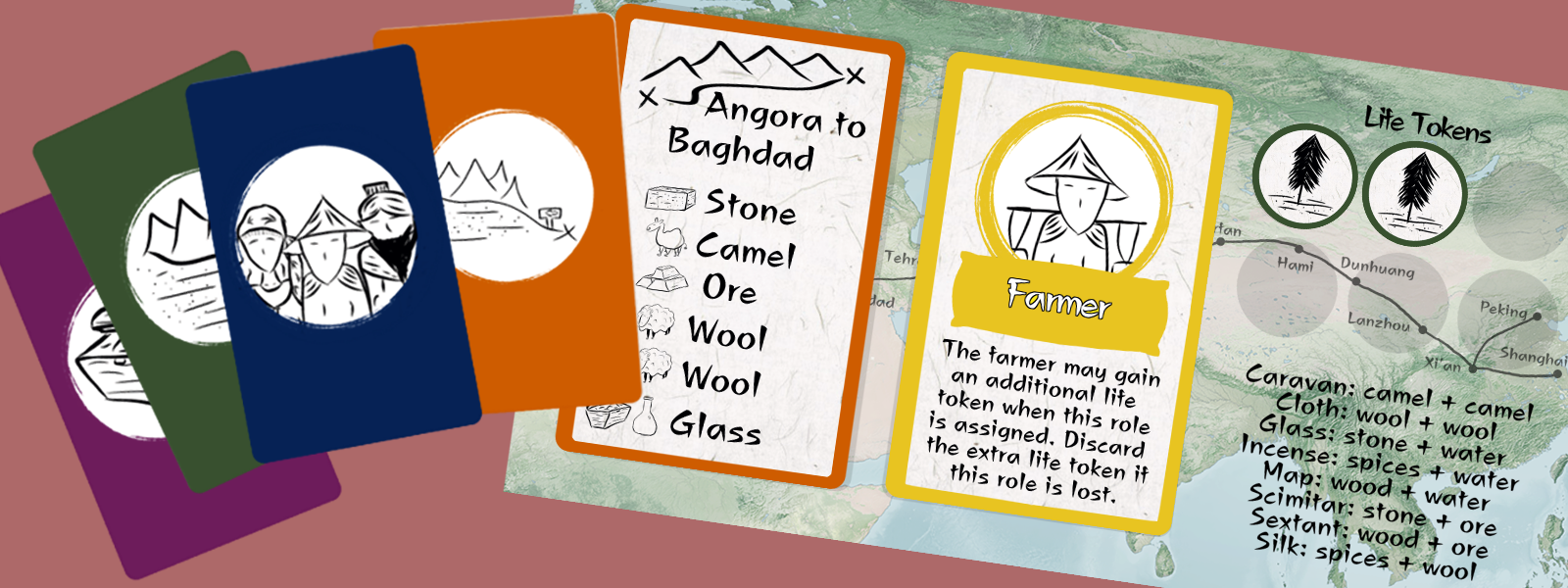 Gather resources to complete your assigned route. Trade resources for specialty items, and try to win by sabatoging other players with curse cards or playing a blessing card on yourself!