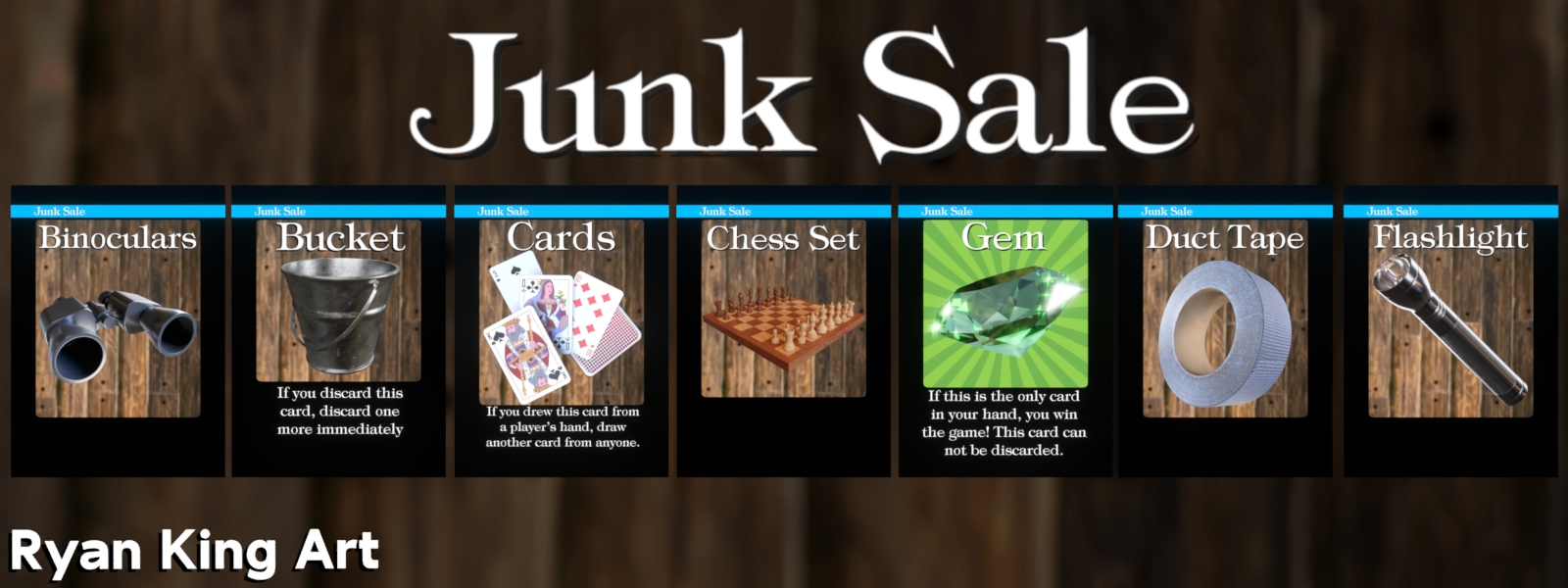 Players draw cards, take cards from other players, and discard cards. Everyone is trying to get the Gem card, but when they obtain it, they don't want the other players to know they have it, because the other players will try to take it from them. Win the game by having only the Gem card in your hand!