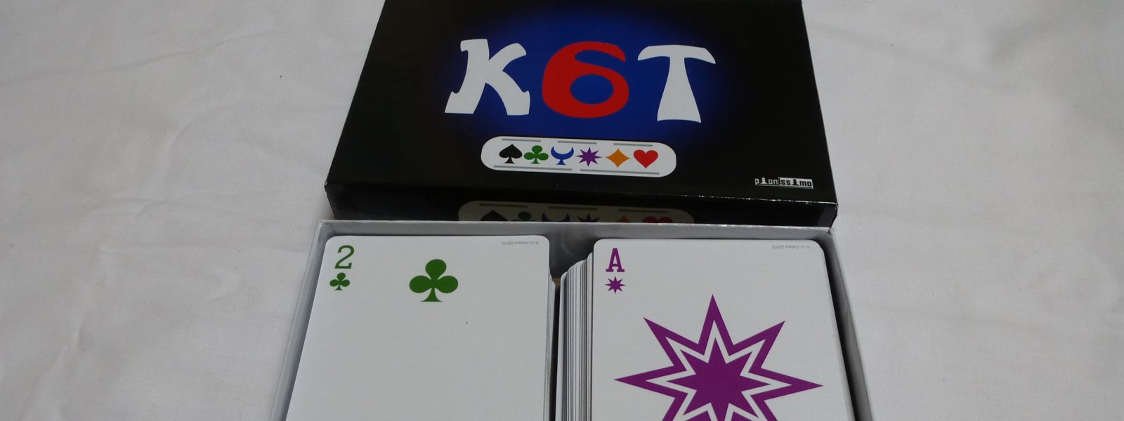 K6T-infinity is a deck of 240 cards. It is the full collection of K6T cards, the rank extension up to 24, both symbol and portrait courts, a special infinity card, an half-point card, all of these for the 6 coloured suits!