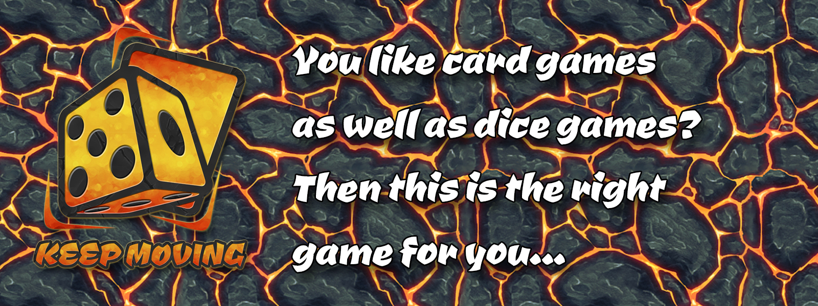 The ground is scorching hot under your feet and you can't stay in one place for long. The survival strategy is "keep moving". The player who is left last, having managed to play his hand cards that affect his dice rolls ahead the longest, wins the game.