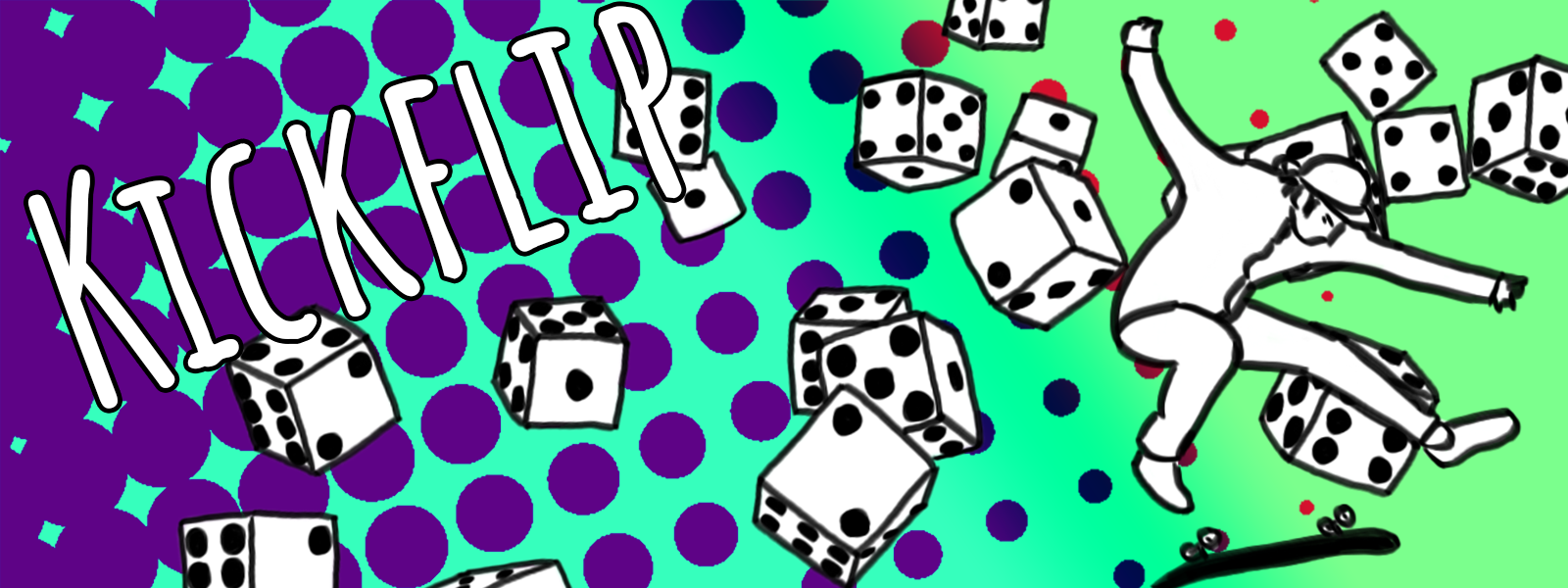 Kickflip is an easy-to-learn and quick-to-play skateboarding card and dice game for 2-5 players. Players will play Trick Cards while rolling dice to determine the success of the Trick. There will be Flip, Grab, and Grind Tricks and playing them in certain patterns will earn bonuses such as rerolls and extra points. Each player will have a total of 3 different turns with each turn scoring its own points. At the end of the game, the player with the single highest scoring turn is the winner!