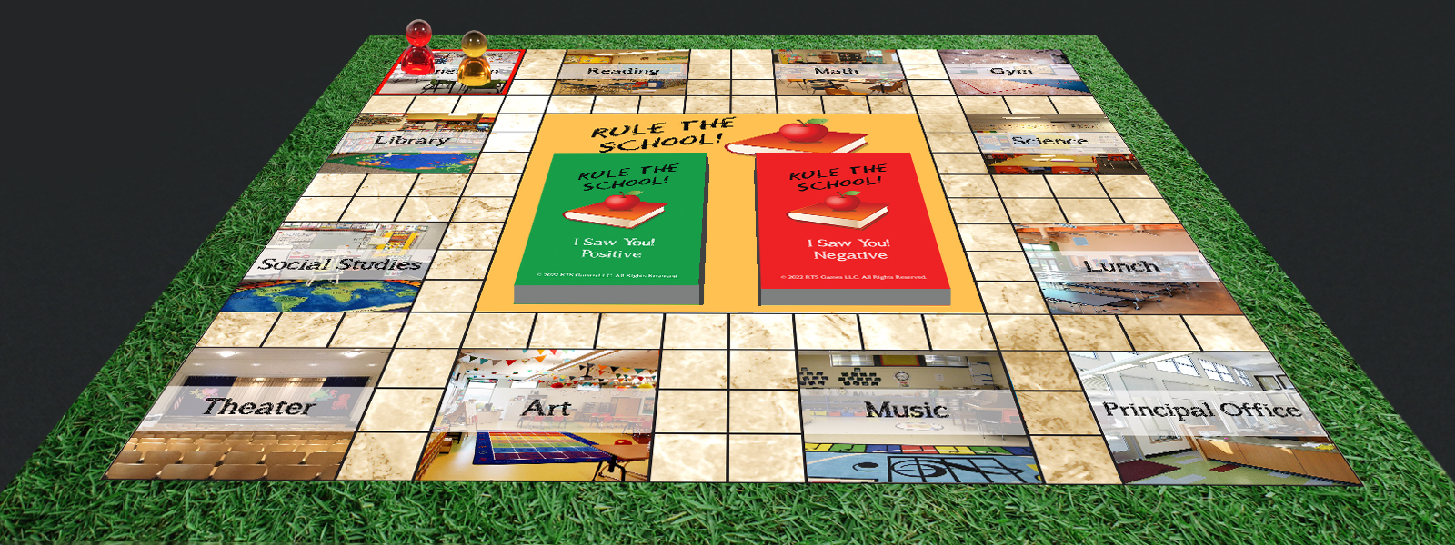 In Kids Rule The School! You and up to four other players are kids at a school in a contest to see which of you is the best-behaved student. You report to different classes where your behavior is judged based on positive or negative behavior you have been seen doing. If you have shown enough positive behavior, you gain credit for that class, and the first kids to gain credits for every class wins!