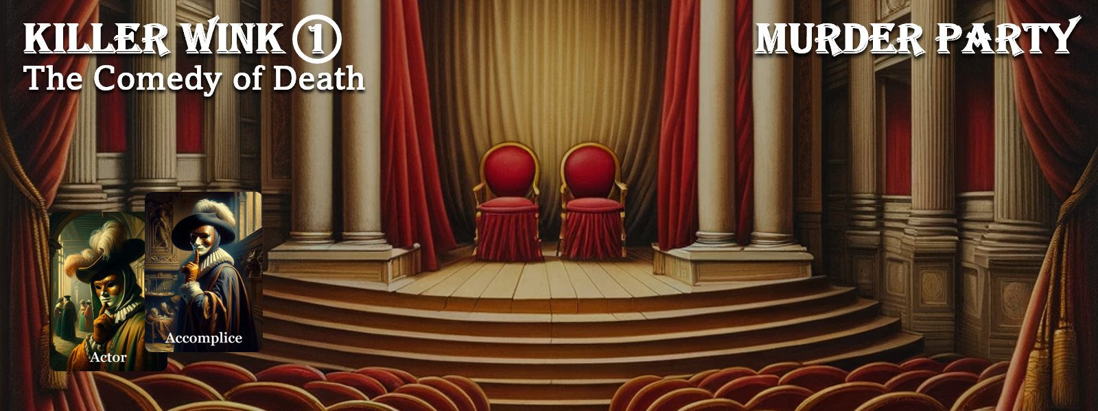 At the Palazzo Aurelio in Venice, during the Golden Age of the Commedia dell'Arte, assassinations happen in pairs. Discreetly eliminate your friends over the course of the evening—in the shadow of a hallway, between two doors, or on the terrace—with your secret accomplice and a single wink… But they too are part of secret pairs aiming to assassinate you. Don’t reveal yourself, or you’ll fall victim to their judgment…