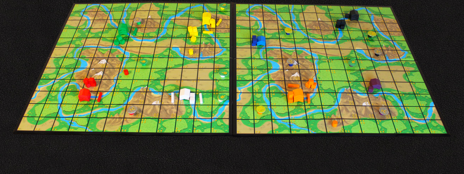 Kommands King of Kings edition is a double board game with a total of up to 8 players. The Kommands board was designed to add more boards to it to become HUGE. Epic battles where all your friends and family can all enjoy. In this version of the game you get Two Games Boards, Double the wood, rock and food resource tokens and eight different colored player's pieces; red, blue, green, purple, orange, black, yellow and white.