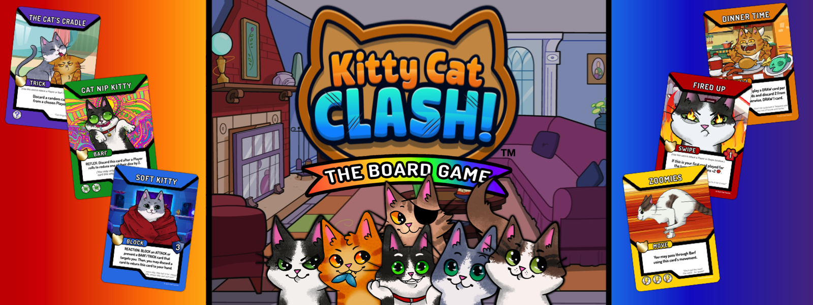 Introducing Kitty Cat CLASH! The Board Game - the purr-fect way to spend a fun-filled evening with friends and family!
