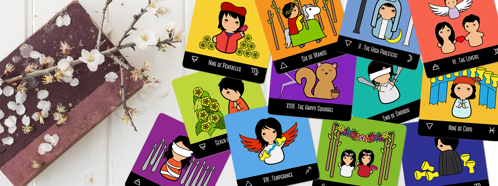 Tarot used to be a "serious" thing, sometimes charged by a dense energy, and that's perfectly ok, but sometimes change is needed and the Kokeshi Tarot brings all the meaning of a Rider-Waite-Smith based Tarot, combined with cute characters and colorful cards to create a kawaii universe suitable for all audiences.