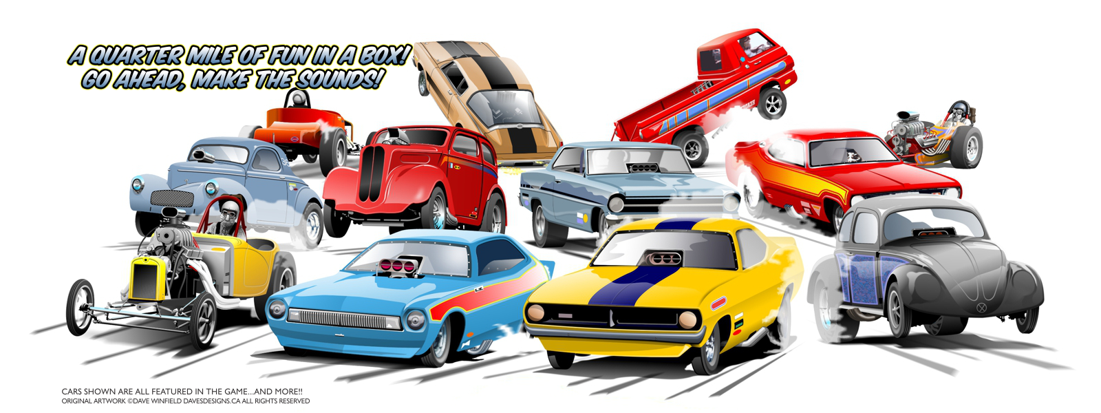 you'll love the theme and vintage drag racing inspired artwork!