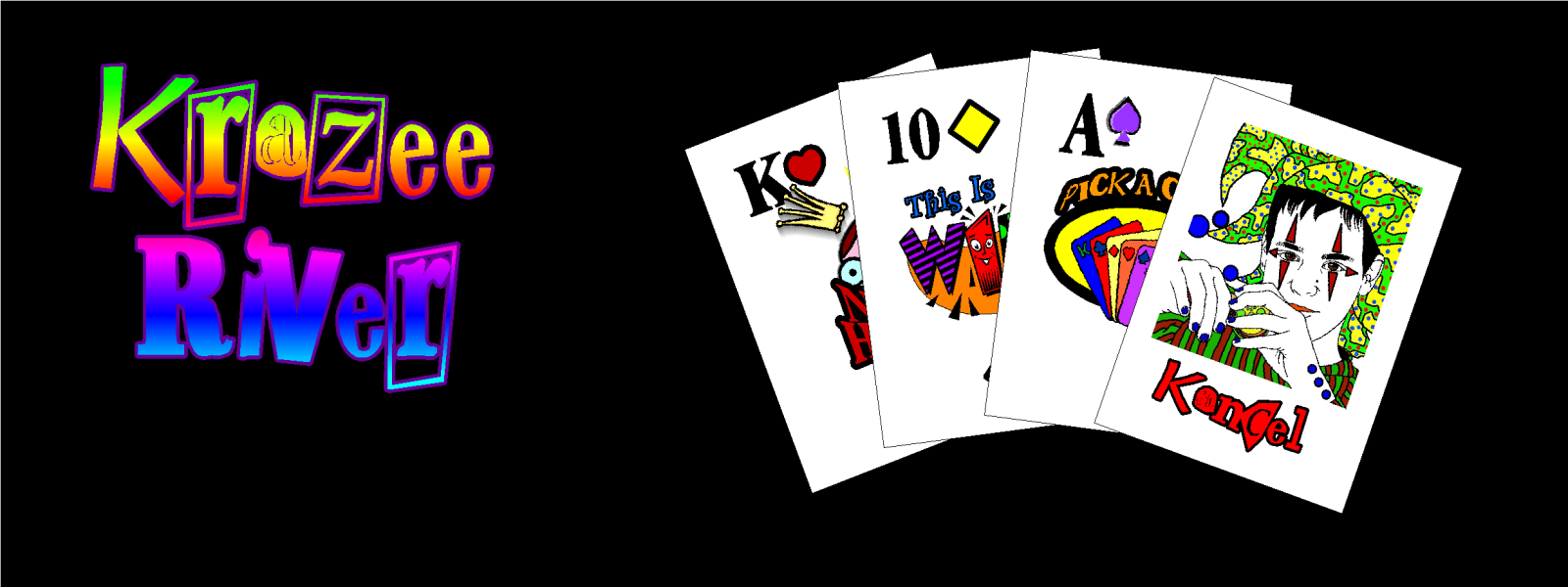 A fun and crazy game. Follow the directions on the cards. Ace - The next person picks a card out of your hand Kancel - If you get a action card on you, this card cancels that card. This card can also be used as a wild card, used for any suit you do not have. 5 - This is a special card. You can use this on ANY player. You lay the card down and exchange hands with that person. However, if that person has a 5, they can lay it down and cancel it, or use the Kancel card on you. Game continues around from the player you tried to exchange with, so, a player or 2 may be skipped. The first one to runs out of cards wins