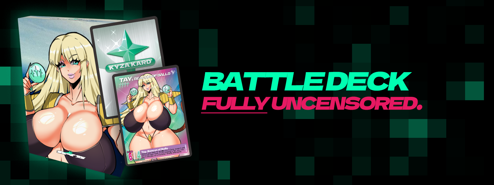 With our handcrafted 20 card battle decks, choose from the Kaz Deck or Tay Deck to (respectfully) climax your opponent into booblivion!