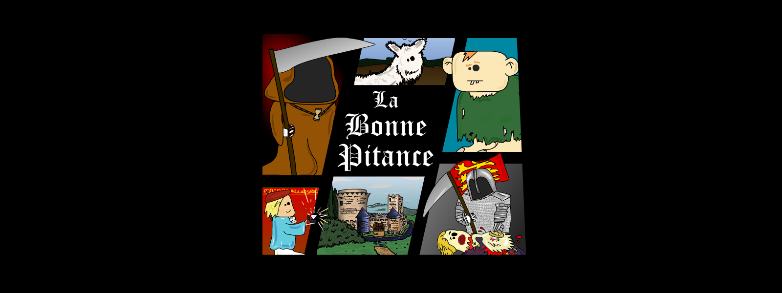 Vous êtes Jehan le Neuneu. D’un naturel bon et généreux, vous vous demanderez toujours ce que vous avez pu faire (avant votre naissance) pour mériter de naître au Moyen-âge. Dans toute autre époque, vous auriez eu de l’ambition, des projets, une vie remplie, etc. Mais pas au Moyen-âge. Ici, entre les sautes d’humeur du Seigneur, les mauvaises récoltes et la terrible peste noire, chacune de vos minutes est employée à survivre. Dans La Bonne Pitance, on ne devient pas riche comme au Monopoly, ou victorieux comme à Risk. Non, non, tout au plus, on évite la mort au cours d’une croisade pour se rendre compte au retour que les barbares ont ravagé vos champs et emporté votre femme. Pourtant ce soir là quand viendra la nuit, on sera heureux de se dire que malgré tout on a réussi à survivre un jour de plus au Moyen-âge.