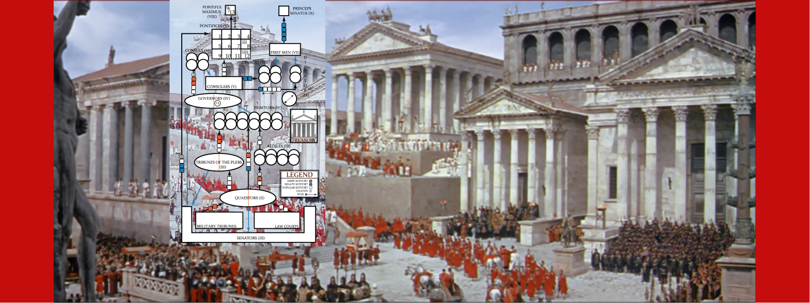 Si te gustan los juegos ambientados en la Antigua Roma, echa un vistazo también a ROME IN CRISIS,, un juego sobre la caótica situación durante el siglo III d.C. además de THE REPUBLIC OF CARTHAGE, sobre el mayor rival de Roma.