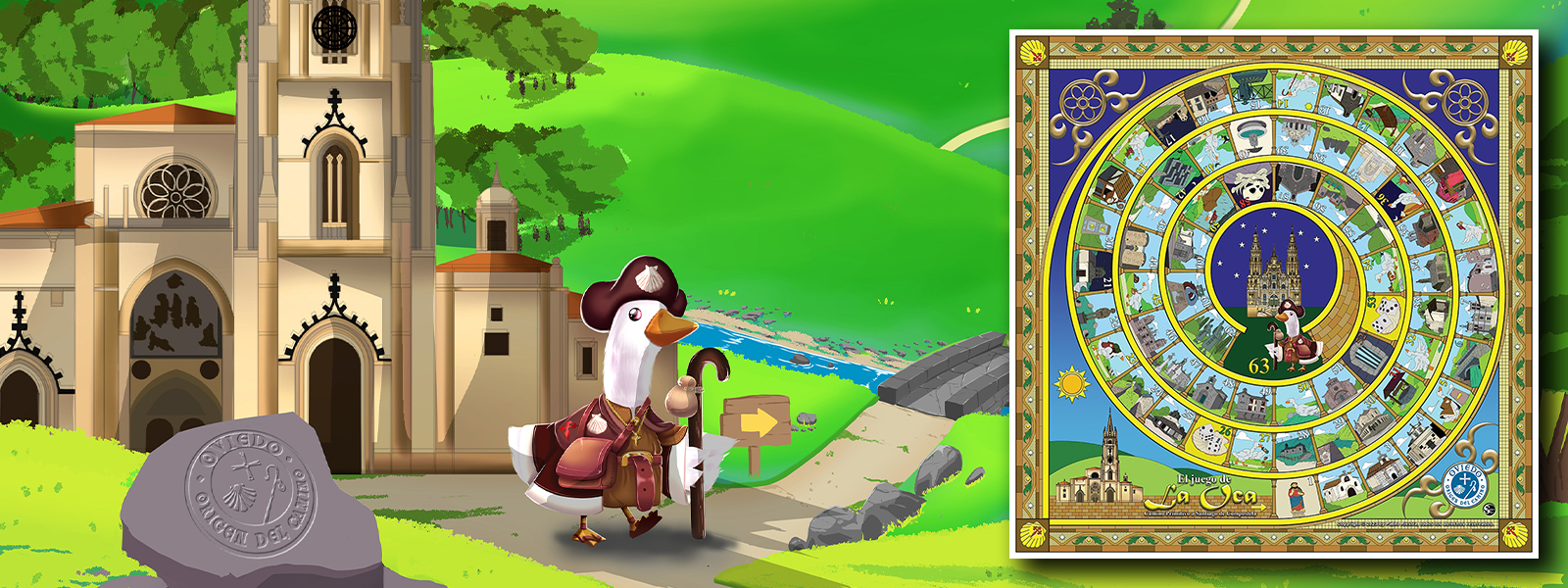 The version we are presenting to you is a unique representation of that boardgame but with locations from the First Path of St. James (El Camino Primitivo - IX AC) which originated from Oviedo's Cathedral of San Salvador by the first official pilgrim, the king Alfonso II, in 834 AC, to a roman settlement where the hidden tomb was found before Santiago de Compostela acquired its own name or the Kingdom of Spain was even stablished by the expansion of the Kingdom of Asturias.