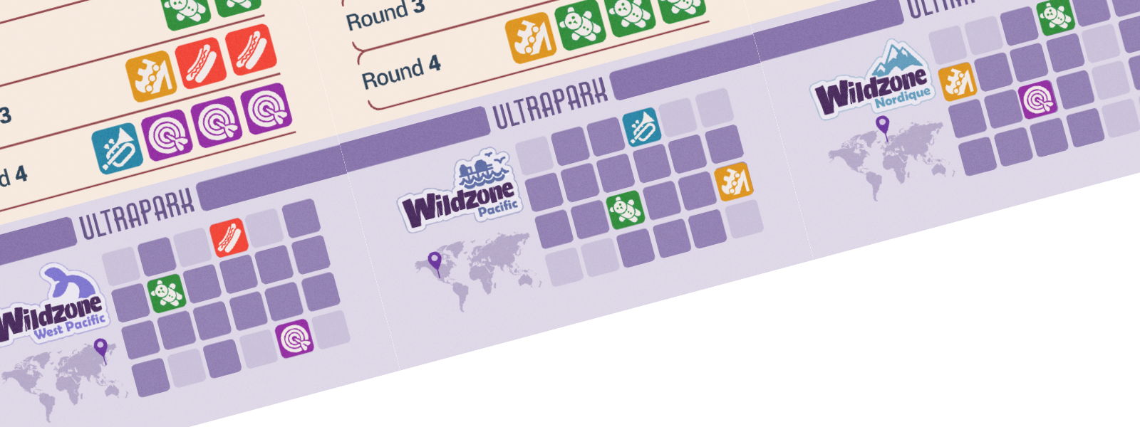 Ultraparks 3-card expansion adds 6 new ultraparks to amp up the challenge! Each ultrapark requires maximum attention to detail, as even the slightest variation from the plan can disrupt the park experience. Use your hard-earned skills to prove you’re the best in the world!