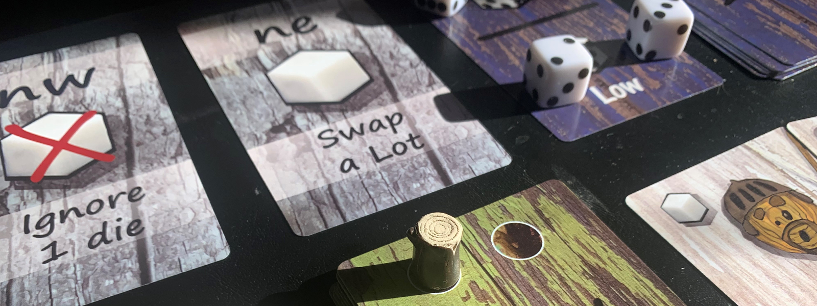 Lants and Lot includes the unique Sicherman dice as well as an expansion of betrayal and binary options to adjust the four dice rolled in your favor. Players begin with 2 high Sicherman dice and 2 low. The hand cards let them swap starting dice as well as pair them to trigger abilties.