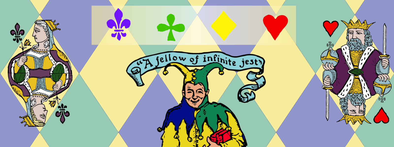This mini version of Le Bouffon D'Or is called Le Petit Bouffon (The Little Jester) and salutes Mardi Gras, where the color scheme reflects the festive season and the suit of spades has become fleurs.