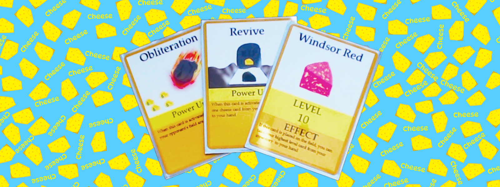 If both players have a cheese card active on the field, whoever’s turn it is may attack the defending cheese. If your cheese is a higher level then your opponents, when you attack they have to put their cheese into the graveyard. You may attack their cheesy points directly unless they have cheese cards active in play. If they have cheese cards in play you cannot attack their cheesy points directly. If you attack a cheese card of the same level that you’re attacking with they both go to the graveyard. You can only attack once with a card per turn. Next turn you can attack with that card again. You may attack with as many cards as you want as long that they're on your side of the field. If you attack with multiple cards, you must attack one card after another.