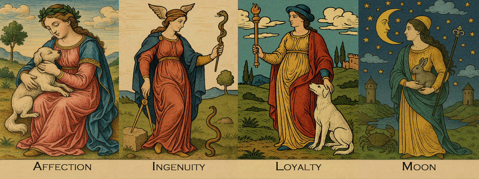 The Iconologia Oracle is based on Cesar Ripa's book of the same name. This giant deck features 177 cards: