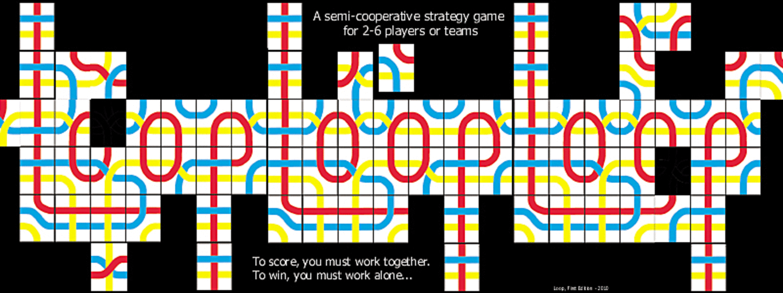 Loop is a semi-cooperative abstract strategy game for up to six players or teams.