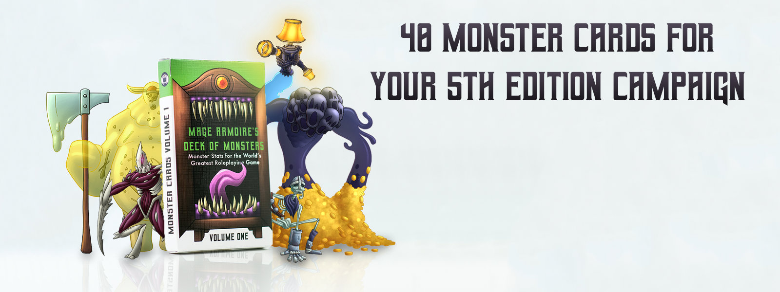 Mage Armoire’s Deck of Monsters brings 40 lovingly crafted original creatures to the greatest roleplaying game on Earth! Add fast-paced action to your 5th edition campaign with the cards' easy organization and sleek formatting, while enriching your combat encounters with detailed stats and unique game mechanics!