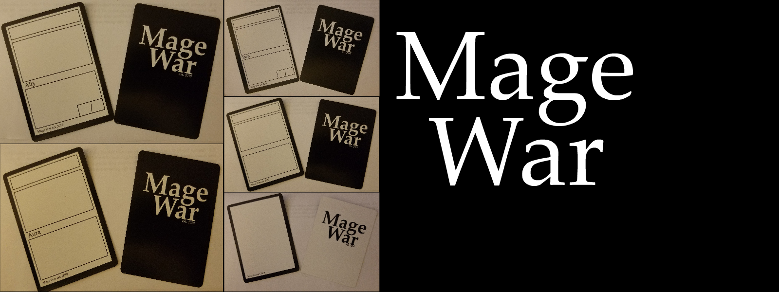 Mage War is a FREE trading card game where you construct your own cards and make decks to battle other players. It is a game of strategy with a focus on balanced mechanics that put opponents on equal footing. (No need to worry about an opponent having an advantage over you because they spent more money to build their deck.) The rules lay out all the guidelines for designing and creating your own cards and decks as well as how to play. The limits of your power are the limits of your own imagination! Craft your own cards and build your own strategy around your own play style and pit your ideas against your friends.