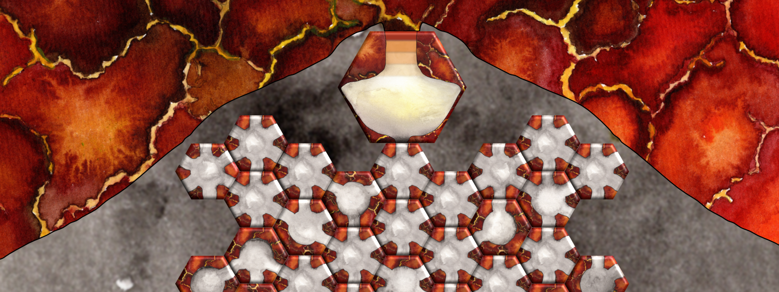Shuffle the hex tiles and deal them out according to the Magma Map below, easy or hard side up.