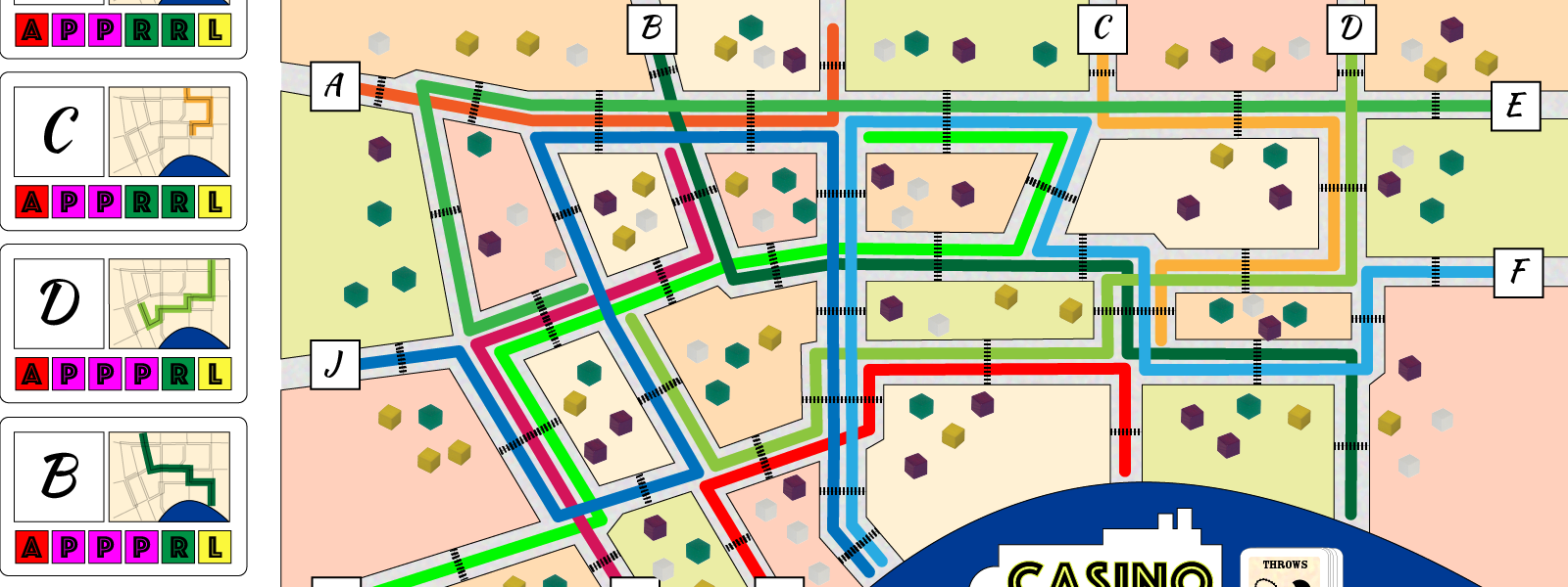 Players take the role of a New Orleans krewe, a social club that organizes parades and parties in the Mardi Gras season leading up to Lent. In this game, your krewe is trying to spread the most revelry among the residents and visitors to New Orleans. Send your krewe members to supply your float, advertise events, recruit new members, and roll through the city in the parades! Laissez les bons temps rouler! (Let the good times roll!)