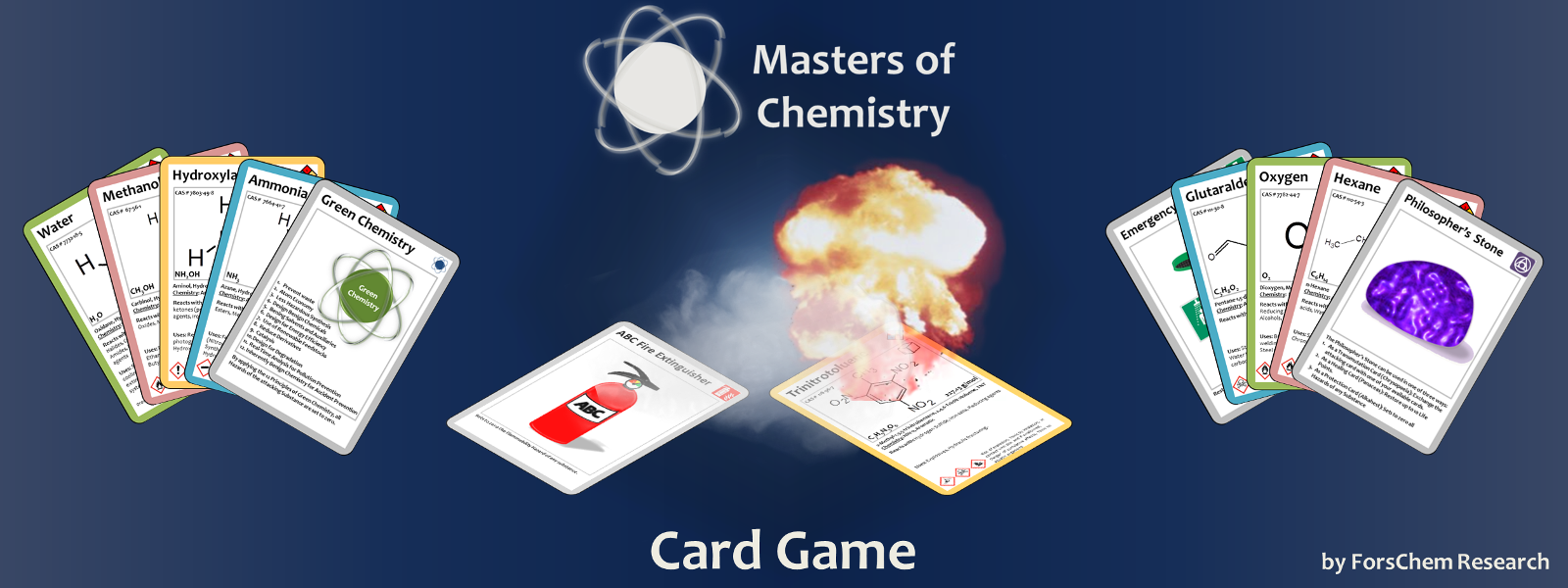 Masters of Chemistry is a card game for Chemistry-lovers, but also for those who want to learn Chemistry (chemical substances, uses, reactions, hazards and safety) in a fun way. There are different types of cards including: Substance cards, Equipment cards, Chemistry cards and Alchemy cards. You can play with one or more friends, using the cards in your stack to defeat them and become a Master of Chemistry!