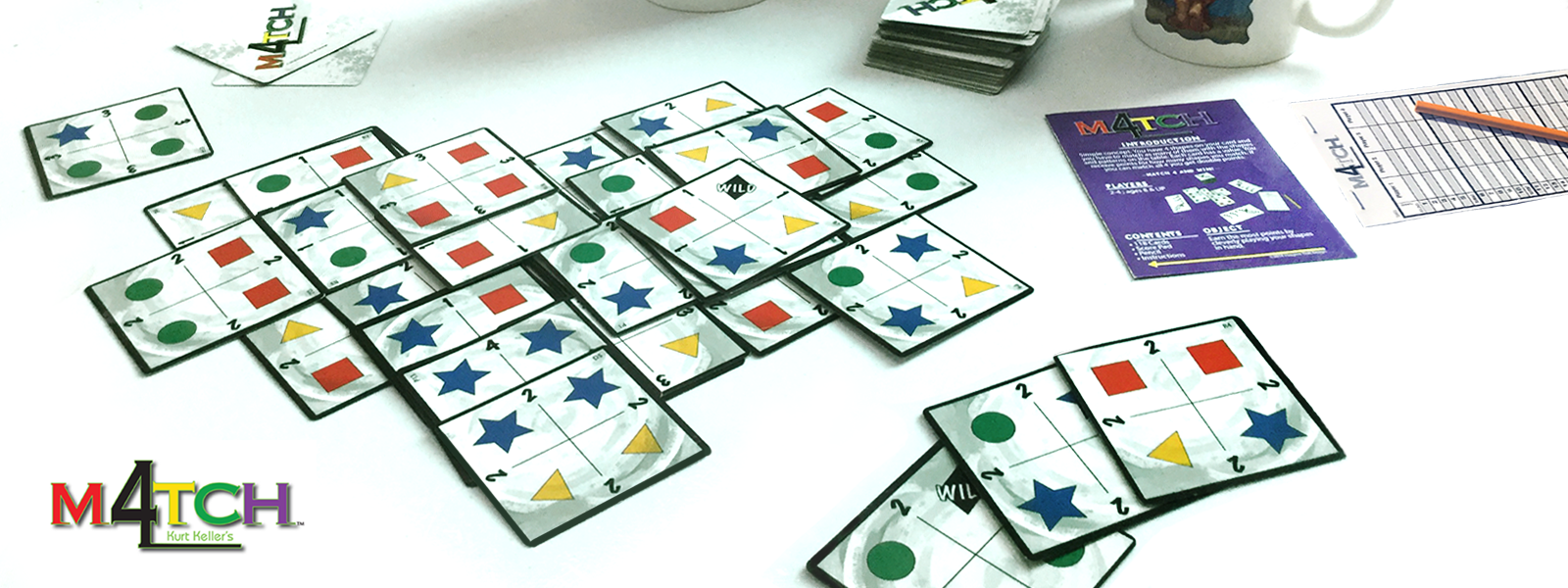 Match 4 is a simply challenging pattern recognition game for 1 - 4 players ages 8 and up. It takes about 20 minutes to play depending on player count. Use your pattern recognition skills to identify the different possibilities. Use your strategy to score the most points. Match as many shapes as you can. If you can match all four you double your score.