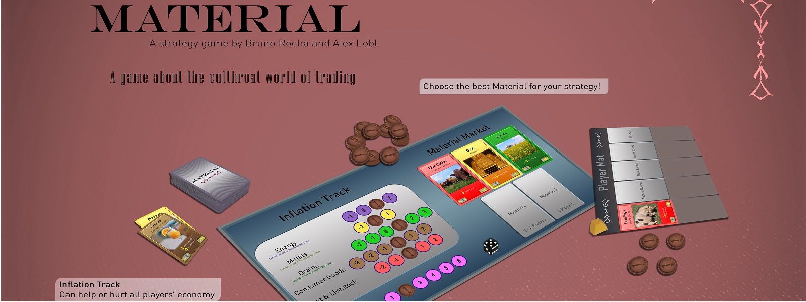 Material is a game in which players compete for various materials during a single day of trading at the New York Stock Exchange.