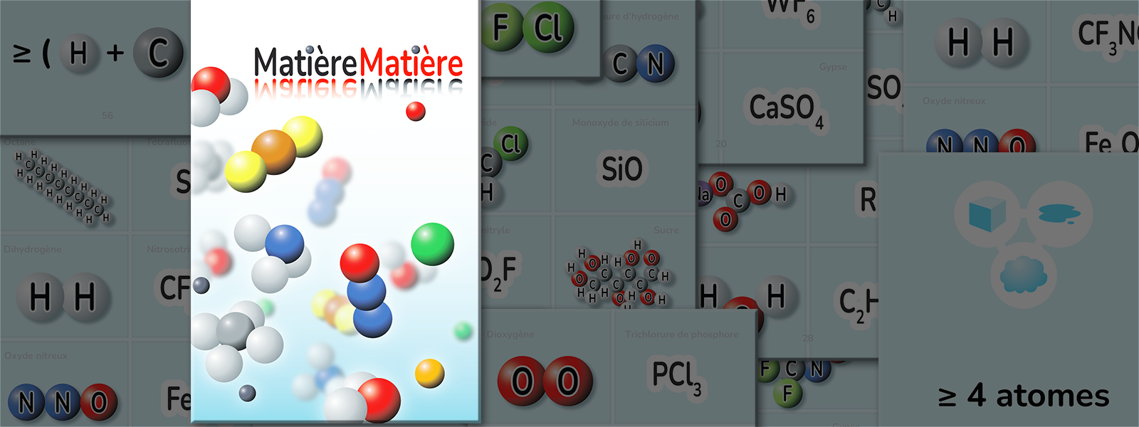 Petit détail intéressant : entre 2 cartes Matière, il y aura toujours une molécule en commun et seulement une. Le modèle atomique et la formule chimique d’une même molécule sont bien évidemment égaux.