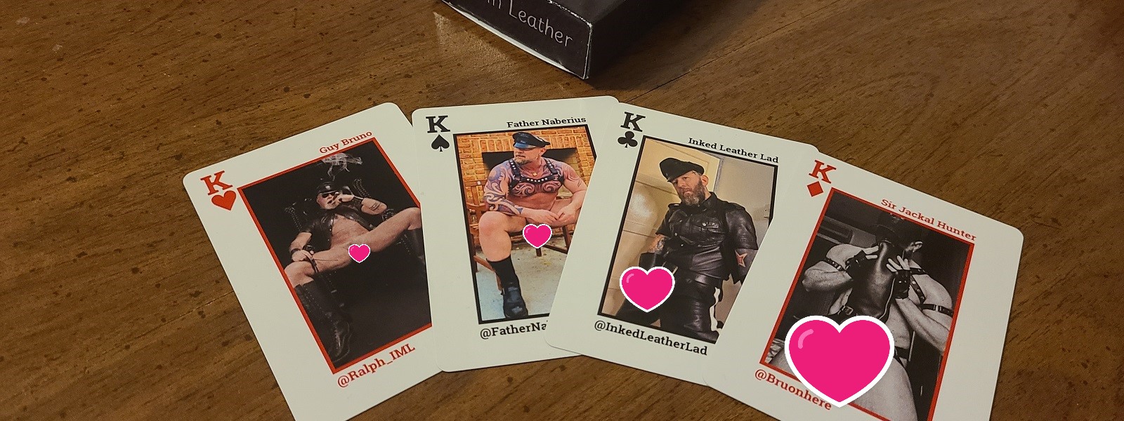 This adult deck of playing cards features 54 different images of sexy men in leather with their cocks out. From chaps to restraints, all types of leather can be found throughout, with images from 45 different men.