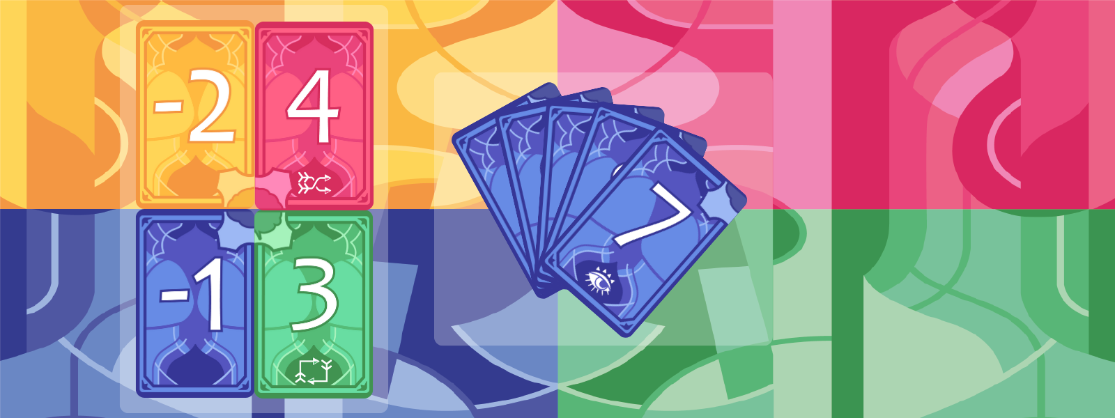 In Mental Mess, the goal is simple: accumulate the fewest points possible! Over four rounds, players use their cards strategically and take advantage of special effects to keep their scores low while trying to put their opponents in a bind.